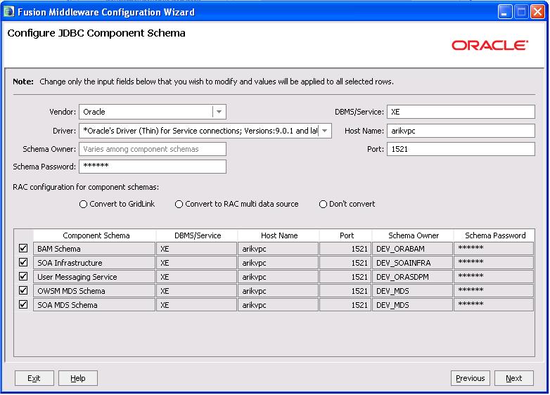 If you gave different schema details during RCU installation, then check the ‘Component Schema’ one by one and give the correct details.