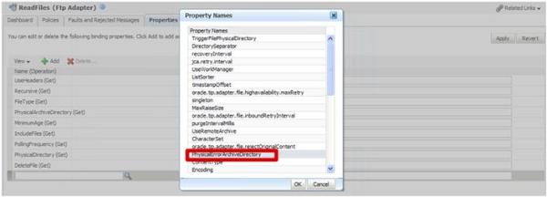 FtpAdapter) -> Go to Properties tab-> Click Add -> Choose PhysicalErrorArchiveDirectoryand put in the value the directory path -> Save.