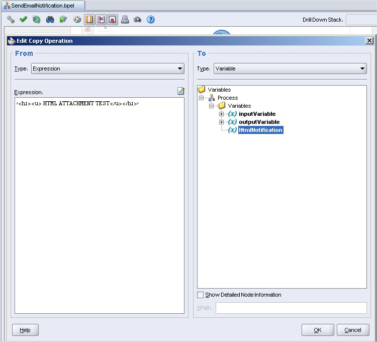 Change the name “NotificationAttachment1” as you wish, for example – “HtmlFromBpel”: