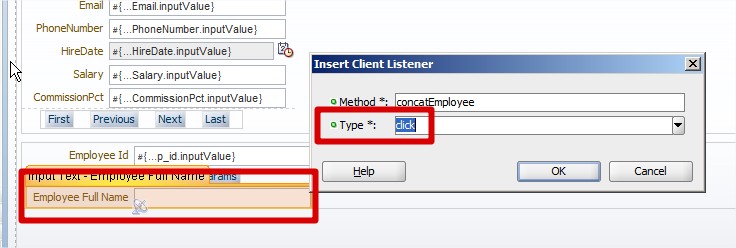 In the next example, I’m concatenating the Employee’s first & last name and populates it to another InputText field.